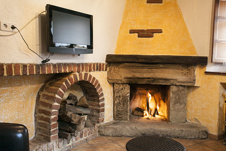 - 1 Salón equipado con chimenea, televisión y aseo.